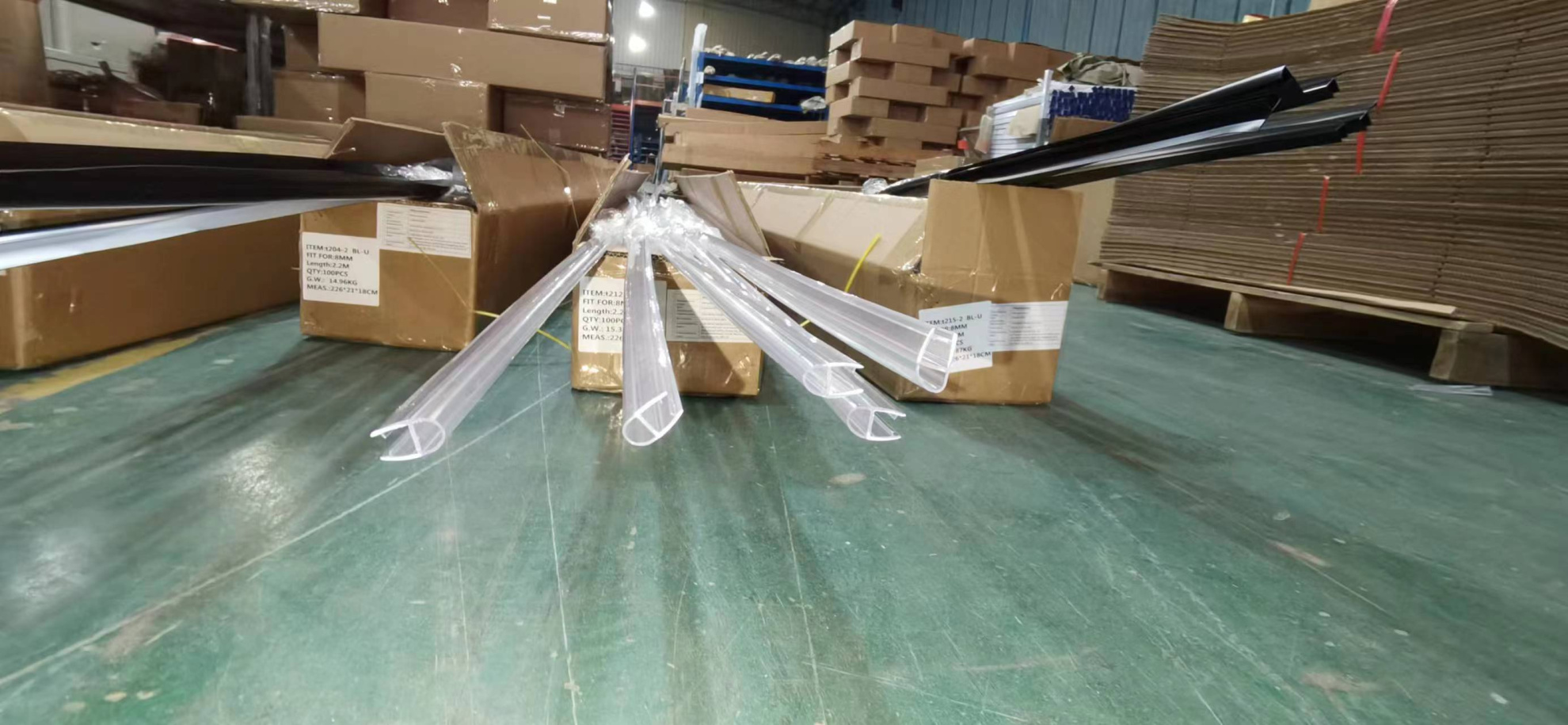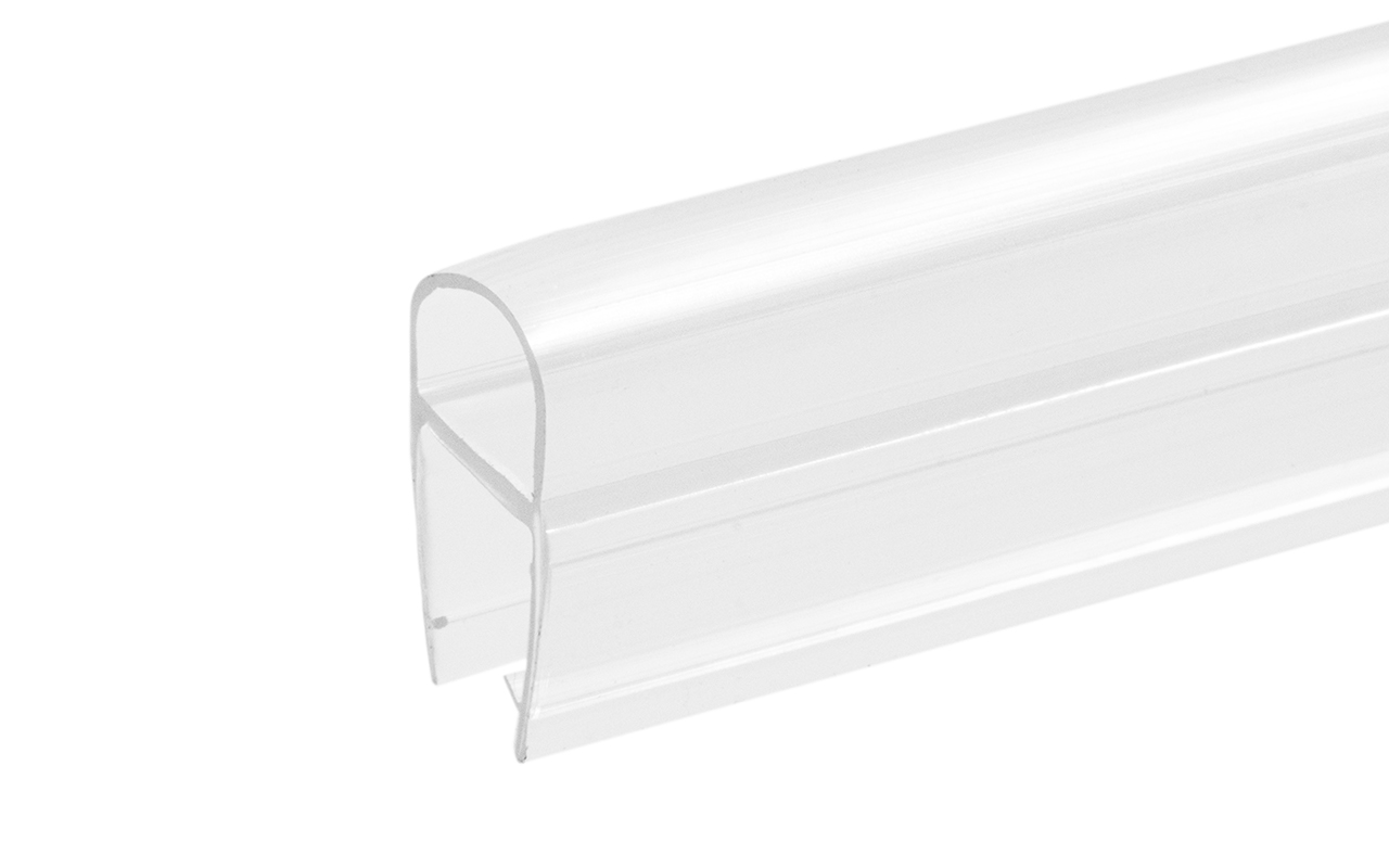 Уплотнитель имеет исполнение полупрозрачной черной поверхности, выполнен из материала ПВХ. Имеет A-образный профиль. Толщина одного типоразмера составляет 1,5 мм, длина – 2200 мм. За счет своих свойств (стойкость к щелочам, минеральным маслам и многим кислотам) прекрасно подходит для крепления стеклянного листа по всему периметру. Позволяет герметично соединять стеклянные панели с дверью, что гарантируют отсутствие течи в вертикальной части конструкции.