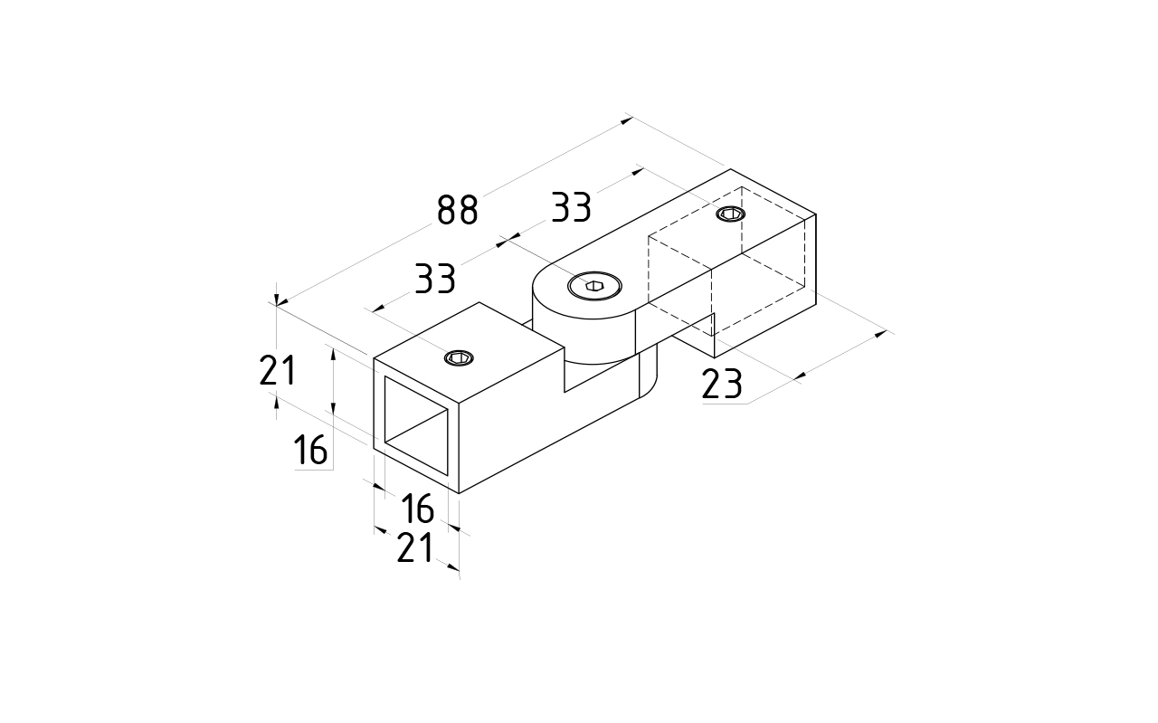 Соединитель труба-труба произвольный угол,под 15х15, нерж. полированный