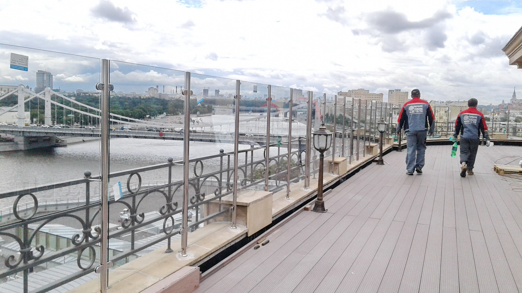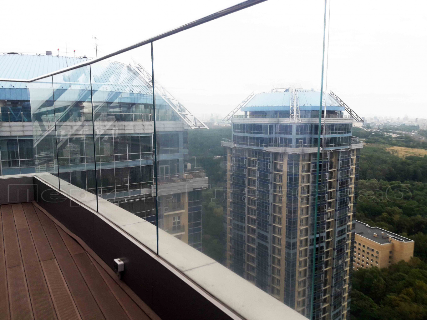 Ограждение кровли на несущем стекле и алюминиевом профиле
