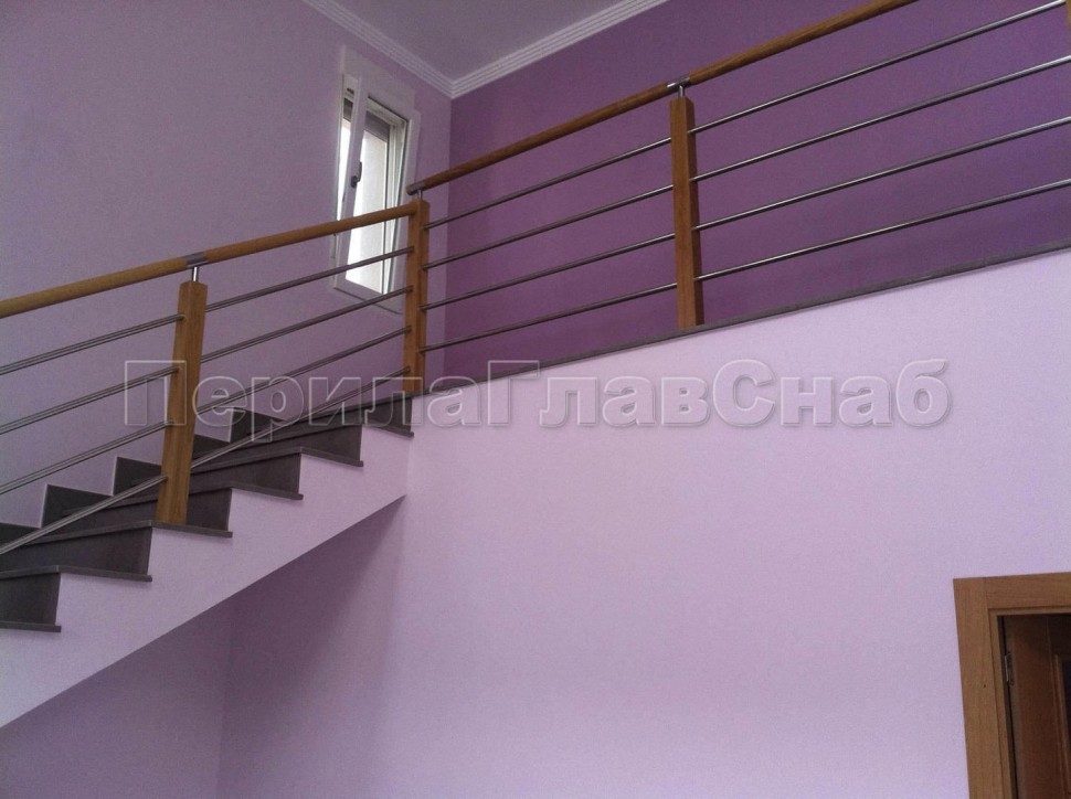 Записаться на встречу Три ригеля на держателях, квадратные деревянные поручень и стойки