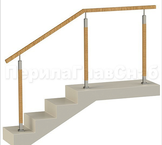 Три ригеля на сварке, квадратный деревянный поручень и круглые стойки
