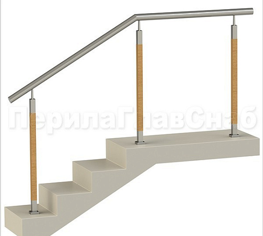Записаться на встречу Нержавеющие ограждения без ригелей с круглым поручнем и стойками с деревянными вставками