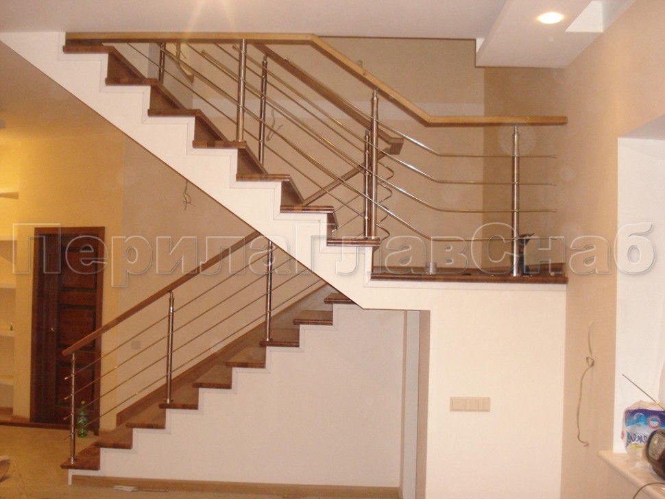 Нержавеющие ограждения без ригелей с круглым поручнем и стойками с деревянными вставками