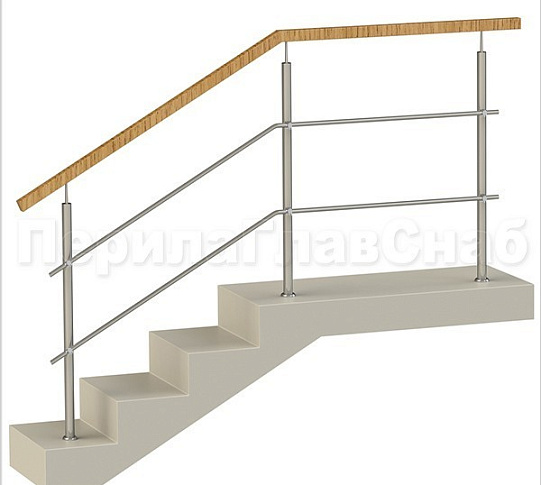 Два ригеля на держателях, квадратный деревянный поручень и круглые стойки
