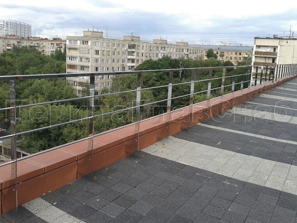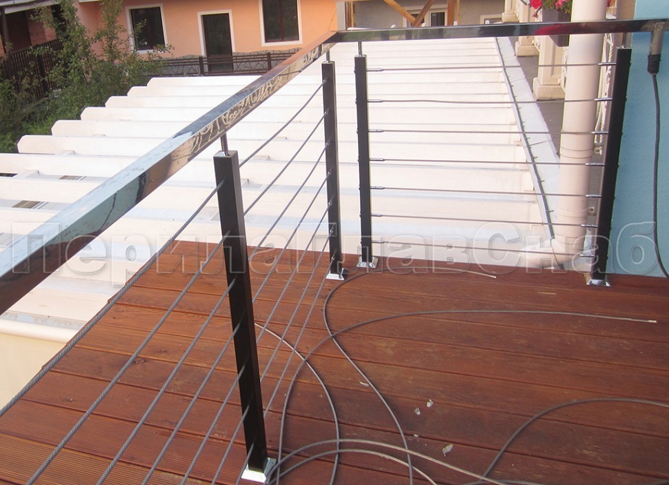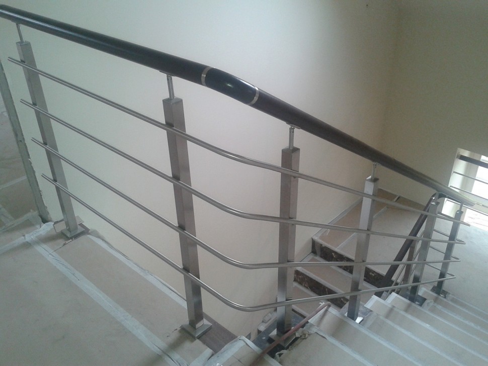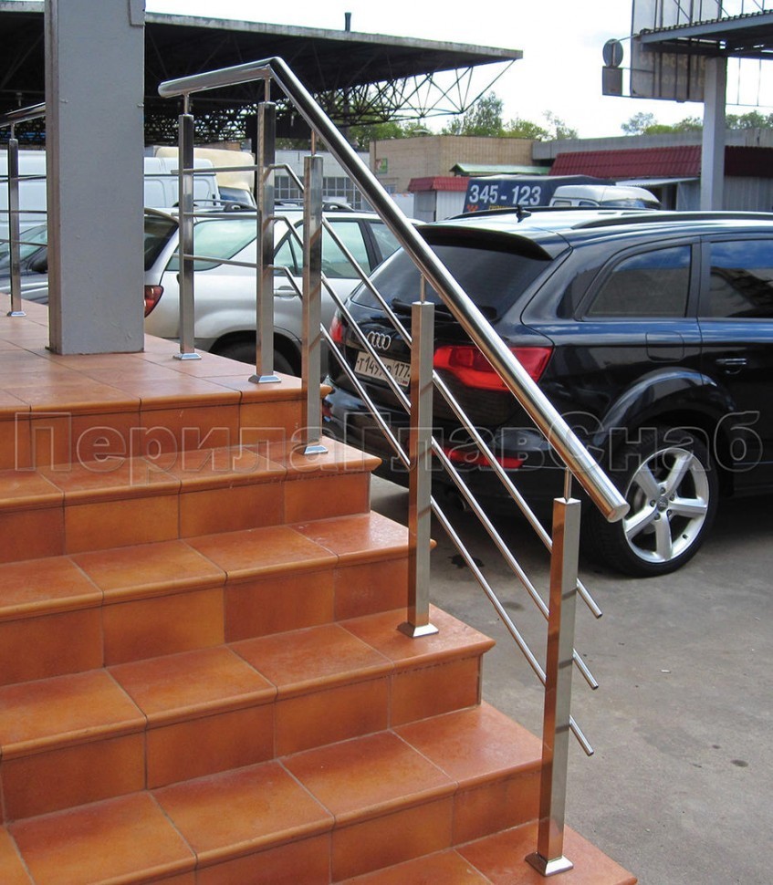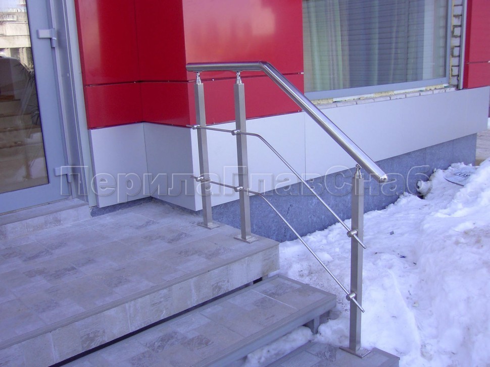 Записаться на встречу Два ригеля на сварке, круглый поручень и квадратные стойки