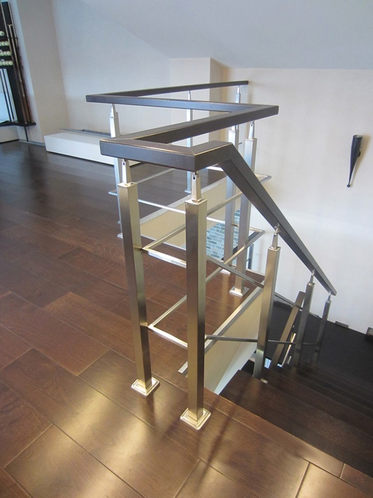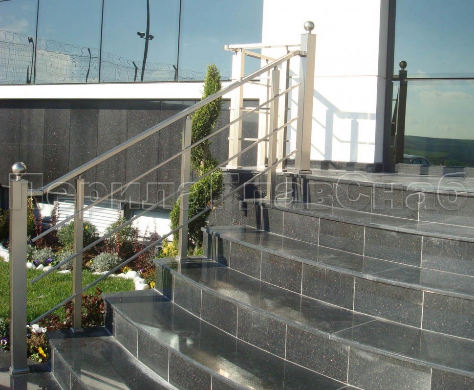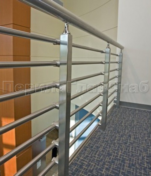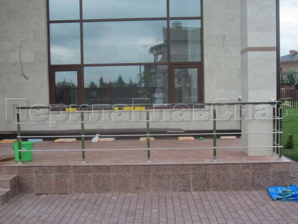 Записаться на встречу Три ригеля на сварке, квадратный поручень и круглые стойки