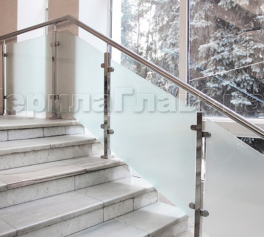 Ограждение атриума со стеклом и стойками