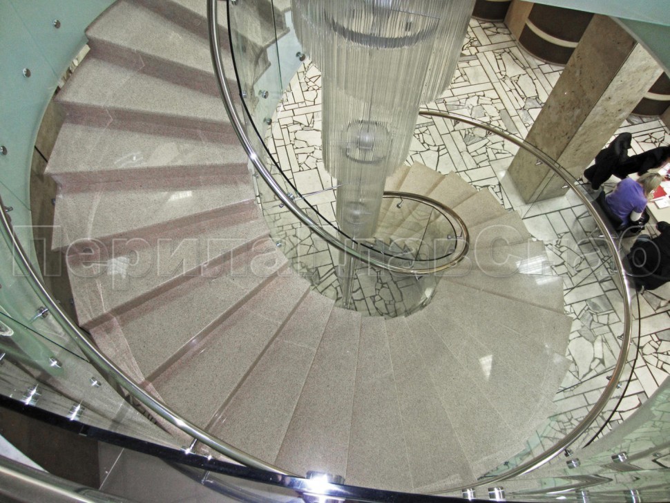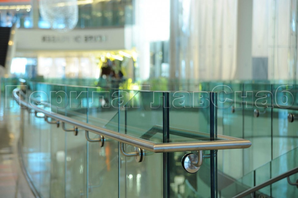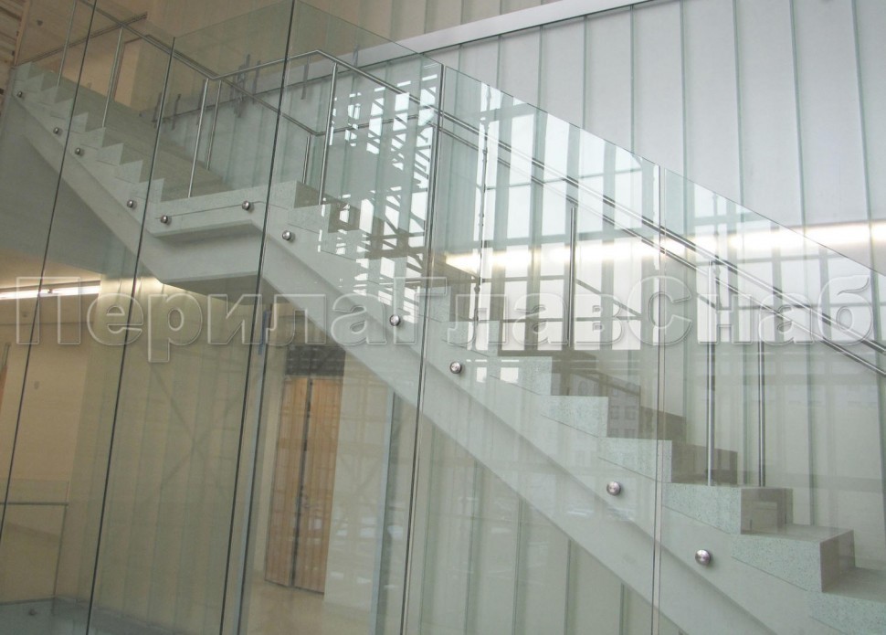 Ограждение с поручнем на выносе на точечном креплении на лестнице