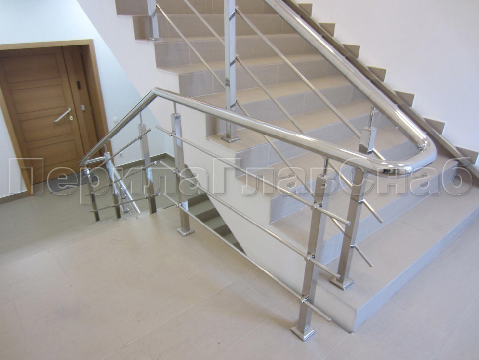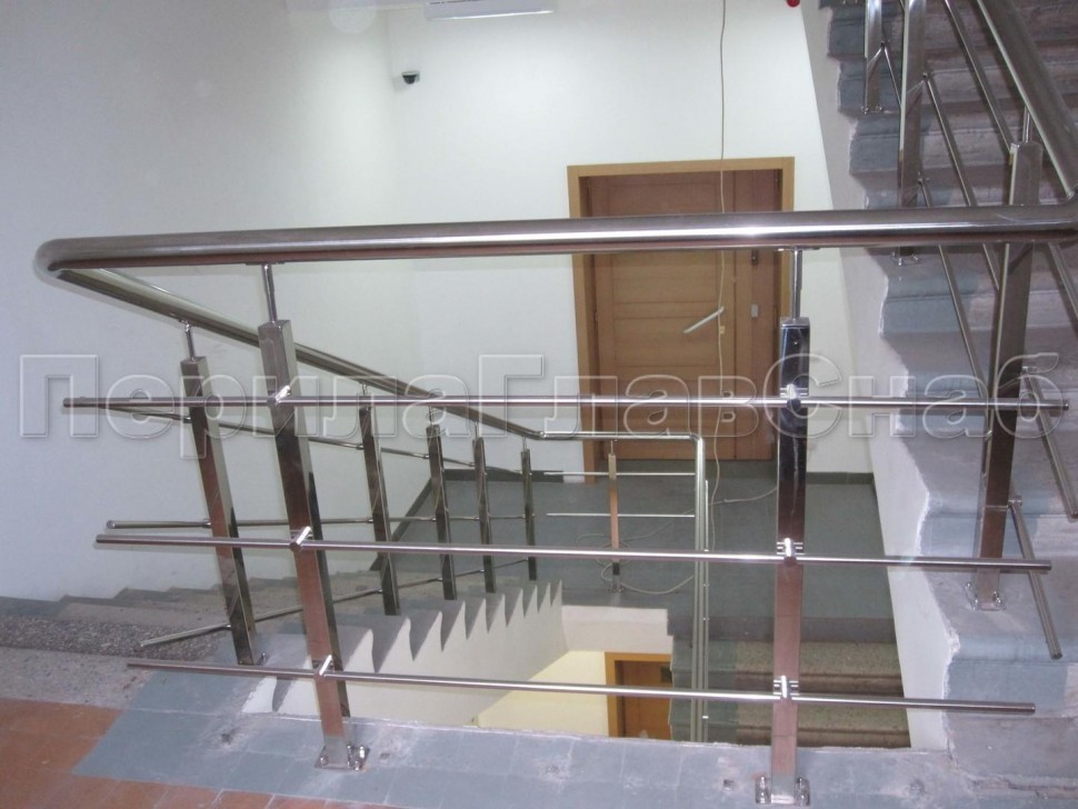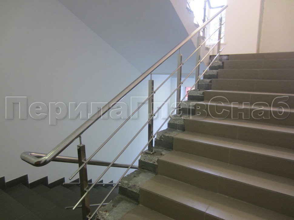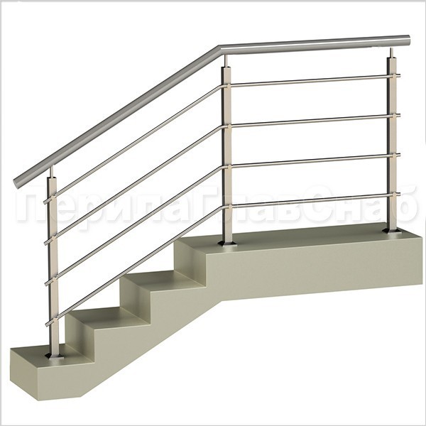 Четыре ригеля на держателях, круглый поручень и квадратные стойки
