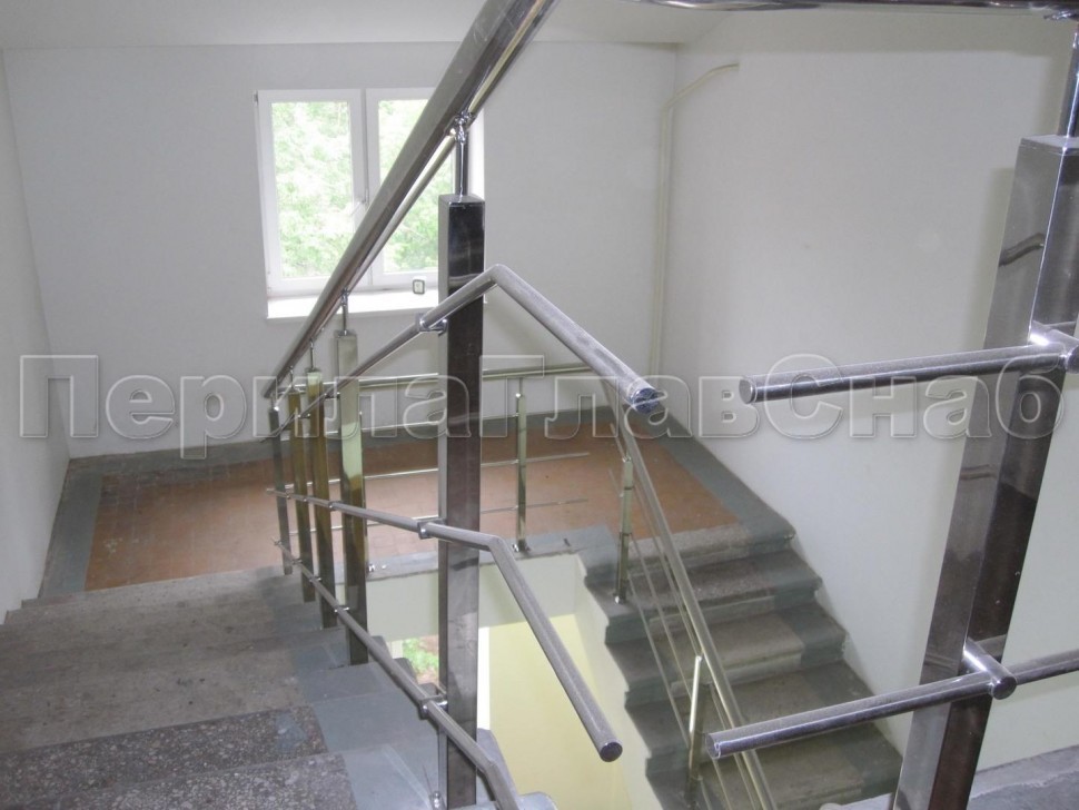 Ограждение для лестницы из нержавейки с зажимными стеклодержателями для крыльца