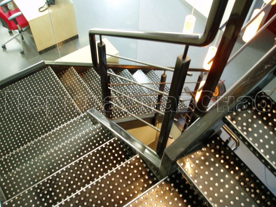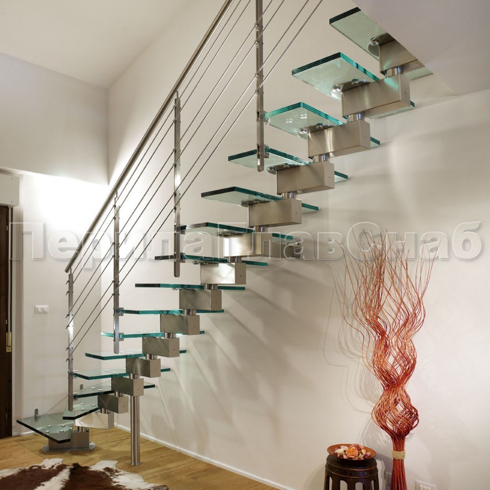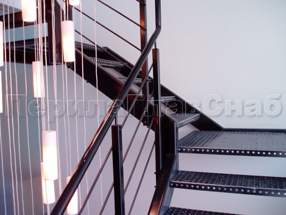 Ограждения с квадратным поручнем со стойками в каждую ступень без ригелей
