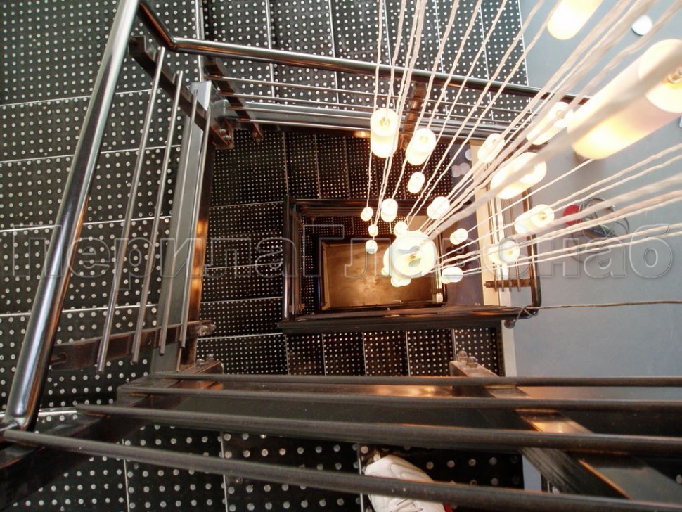 Ограждение лестницы со стеклом, тонированным в массе, стойки и завязки поручня из латуни