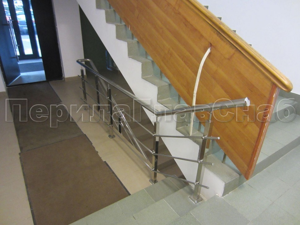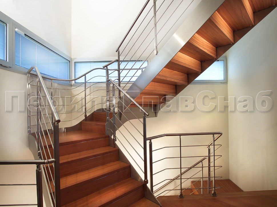 Нержавеющие ограждения без ригелей с круглым поручнем и стойками с деревянными вставками