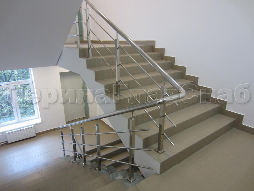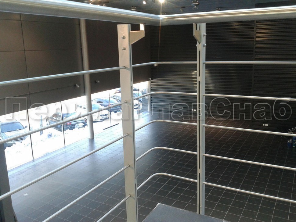 Четыре ригеля на сварке, квадратный поручень и круглые стойки