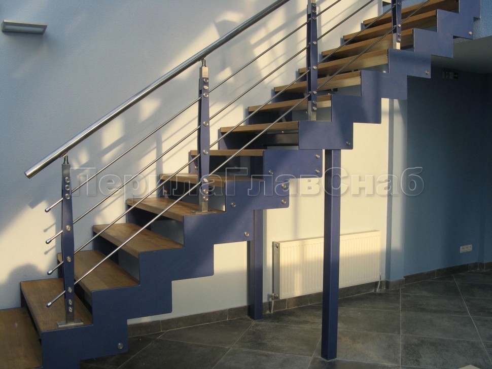 Ограждения с двумя стойками в каждую ступень с деревянным поручнем и без ригелей