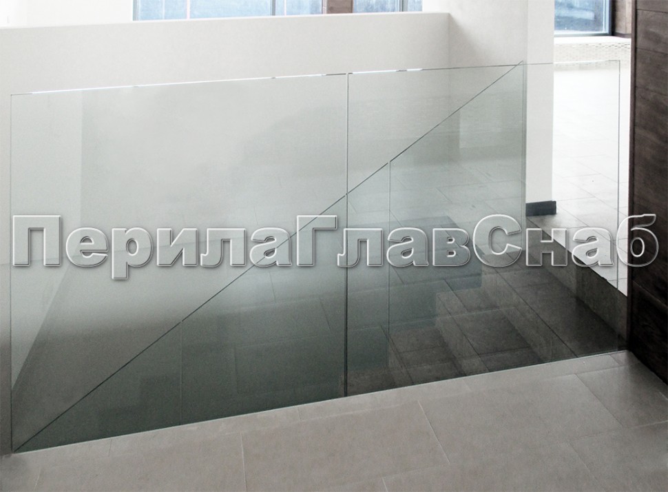 Ограждение с поручнем с пазом в зажимном профиле на лестнице