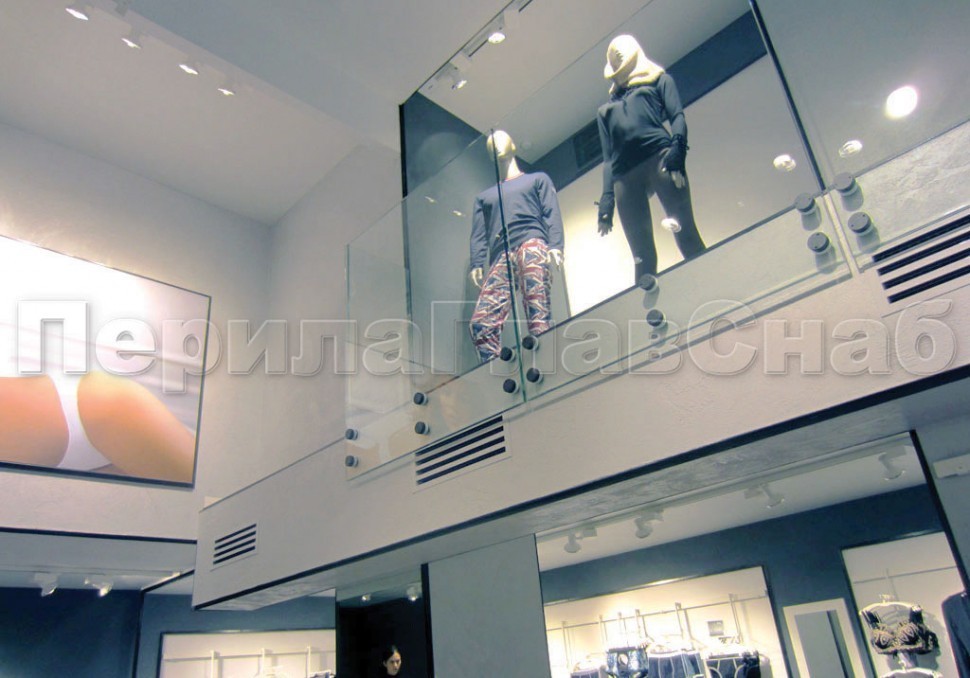 Ограждение с профильным поручнем с пазом на точечном креплении