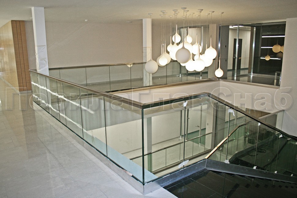 Ограждение без поручня на точечном креплении на лестнице