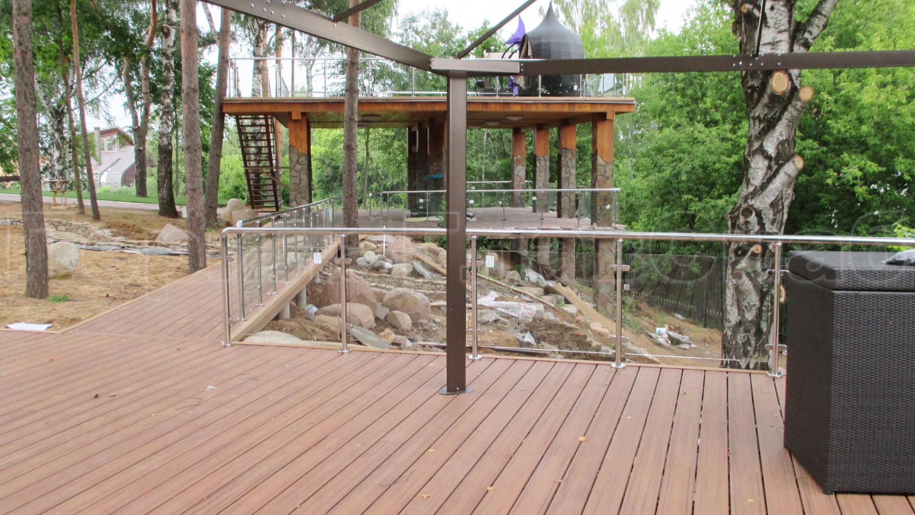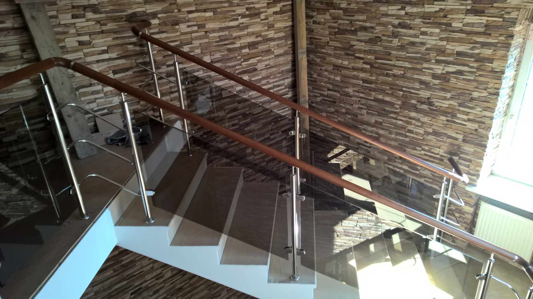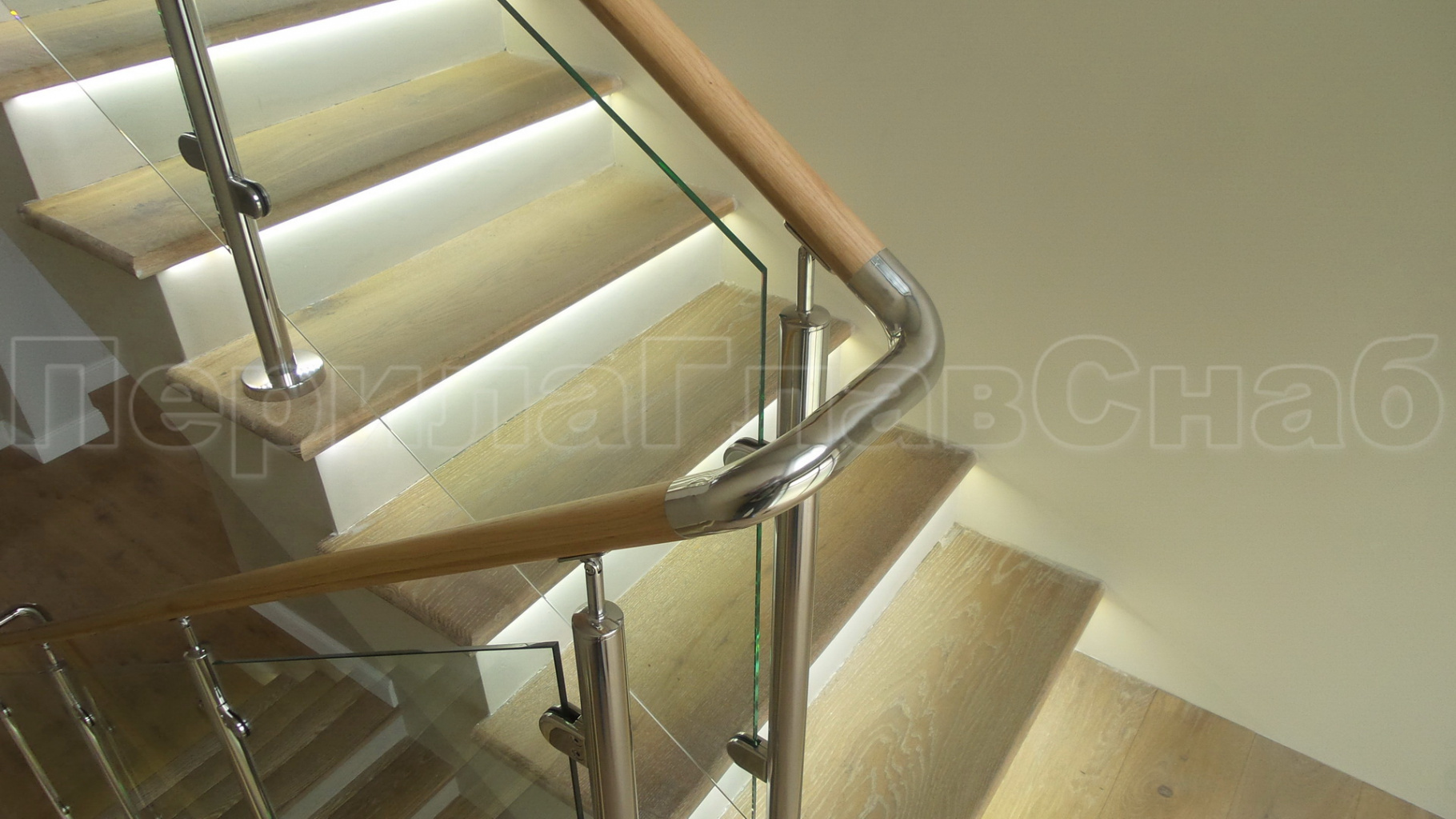 Ограждение с деревянным поручнем с зажимными стеклодержателями и стойками в Симферополе. Готовые проекты ПерилаГлавСнаб - фото 1 Ограждение с деревянным поручнем с зажимными стеклодержателями и стойками в Симферополе. Готовые проекты ПерилаГлавСнаб - фото 2