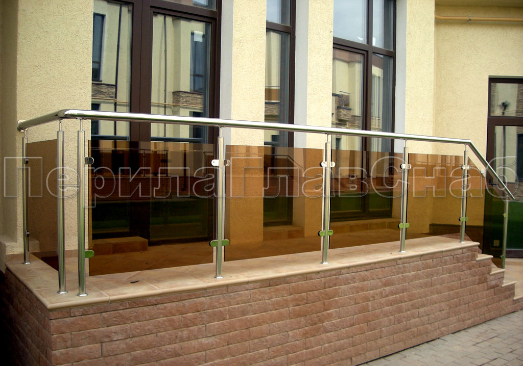 Ограждение для лестницы из нержавейки с зажимными стеклодержателями для крыльца в Симферополе. Готовые проекты ПерилаГлавСнаб - фото 1 Ограждение для лестницы из нержавейки с зажимными стеклодержателями для крыльца в Симферополе. Готовые проекты ПерилаГлавСнаб - фото 2