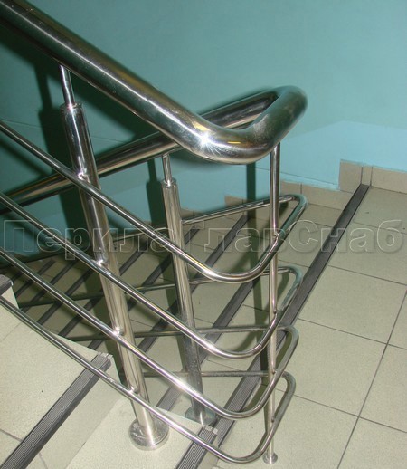 Четыре ригеля на держателях, круглый поручень и квадратные стойки