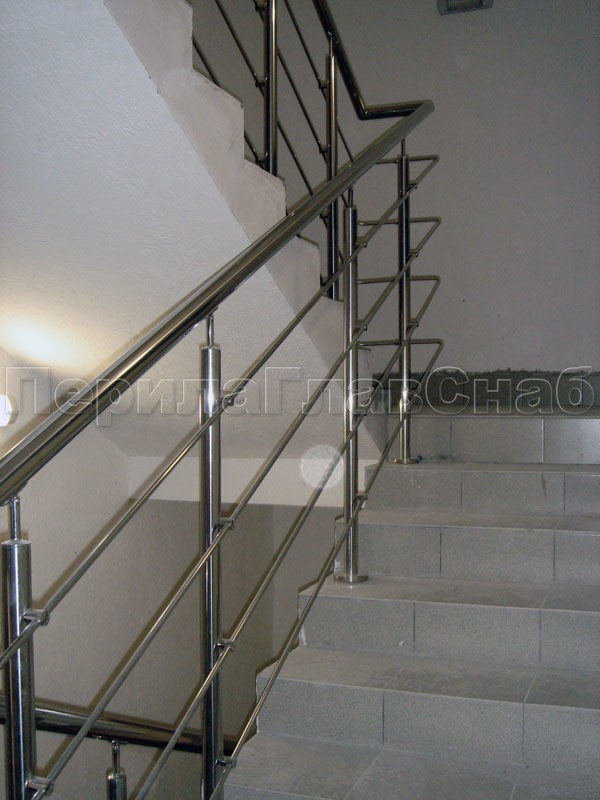 Четыре ригеля на сварке, круглый поручень и квадратные стойки