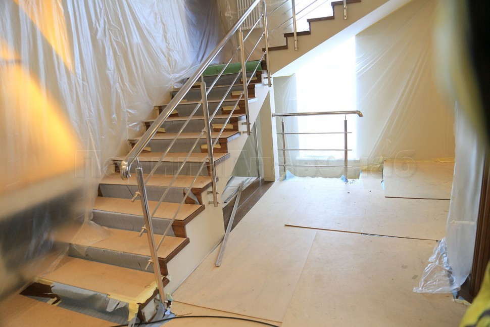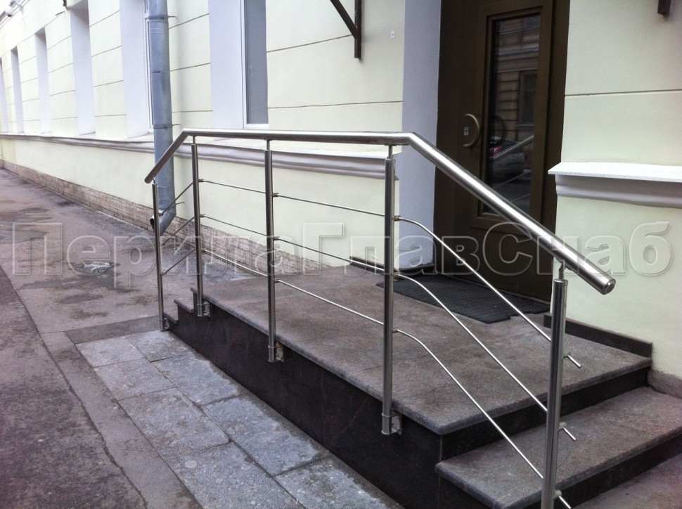 Записаться на встречу Три ригеля на держателях, круглый поручень и круглые стойки для крыльца