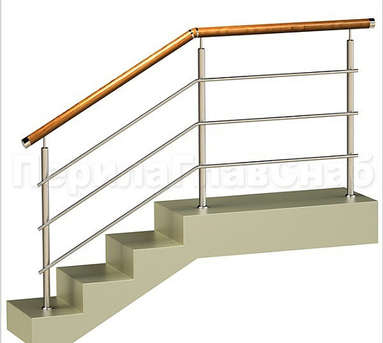 Записаться на встречу Три ригеля на сварке, круглый деревянный поручень и круглые стойки