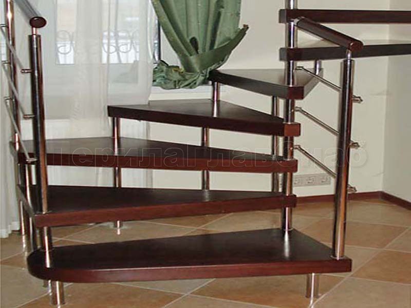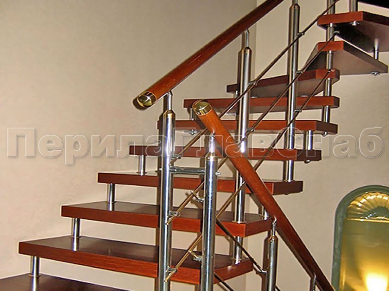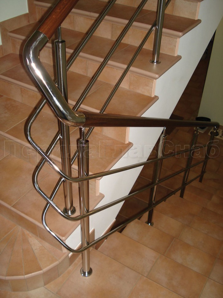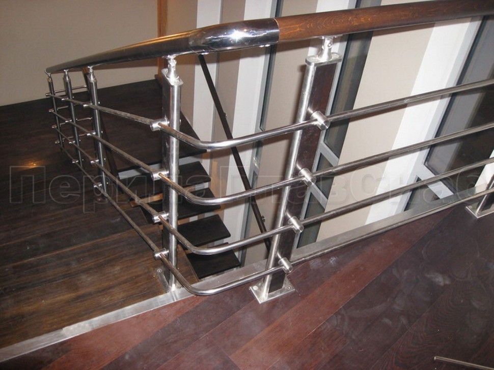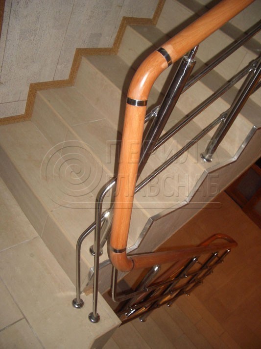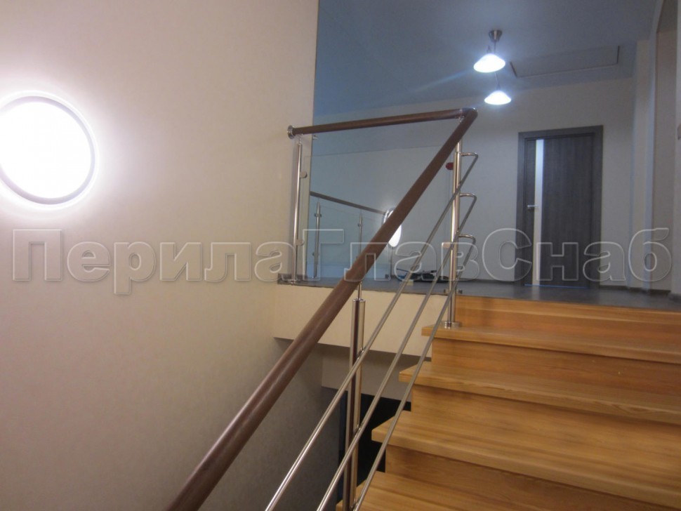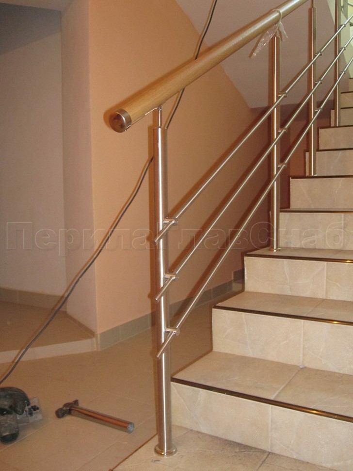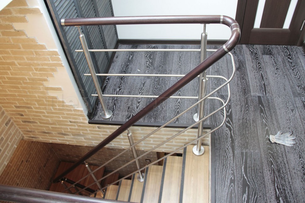 Записаться на встречу Три ригеля на сварке, круглый деревянный поручень и круглые стойки