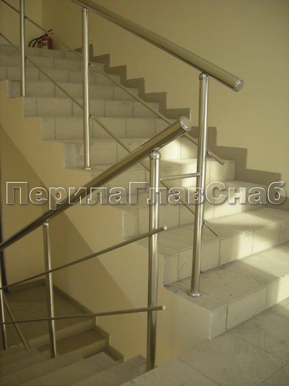 Три ригеля на сварке, круглый поручень и круглые стойки для крыльца