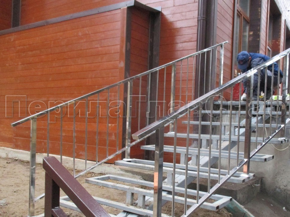 Нержавеющие ограждения для школ и детских садов с вертикальным заполнением “Частокол” - вариант №1 для крыльца