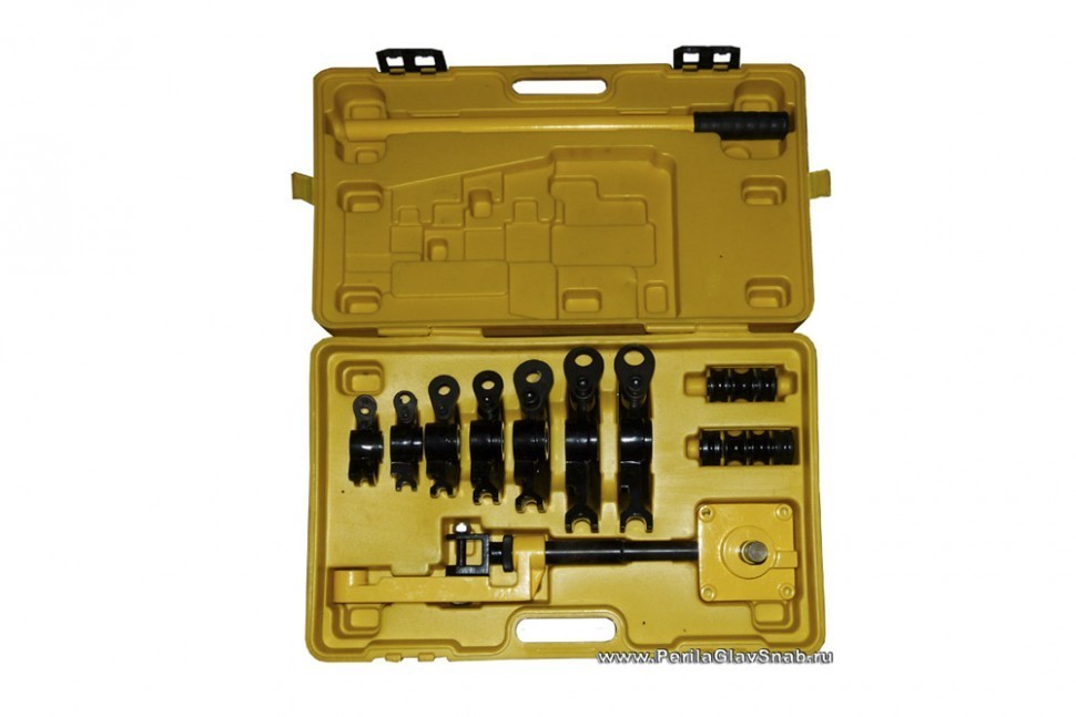 трубогиб ручной в пластиковом кейсе, в комплекте с роликами для трубы, 10, 12, 14, 16, 19, 22 и 25мм. 660х460х180мм. 25кг. R гнутья=10-25мм