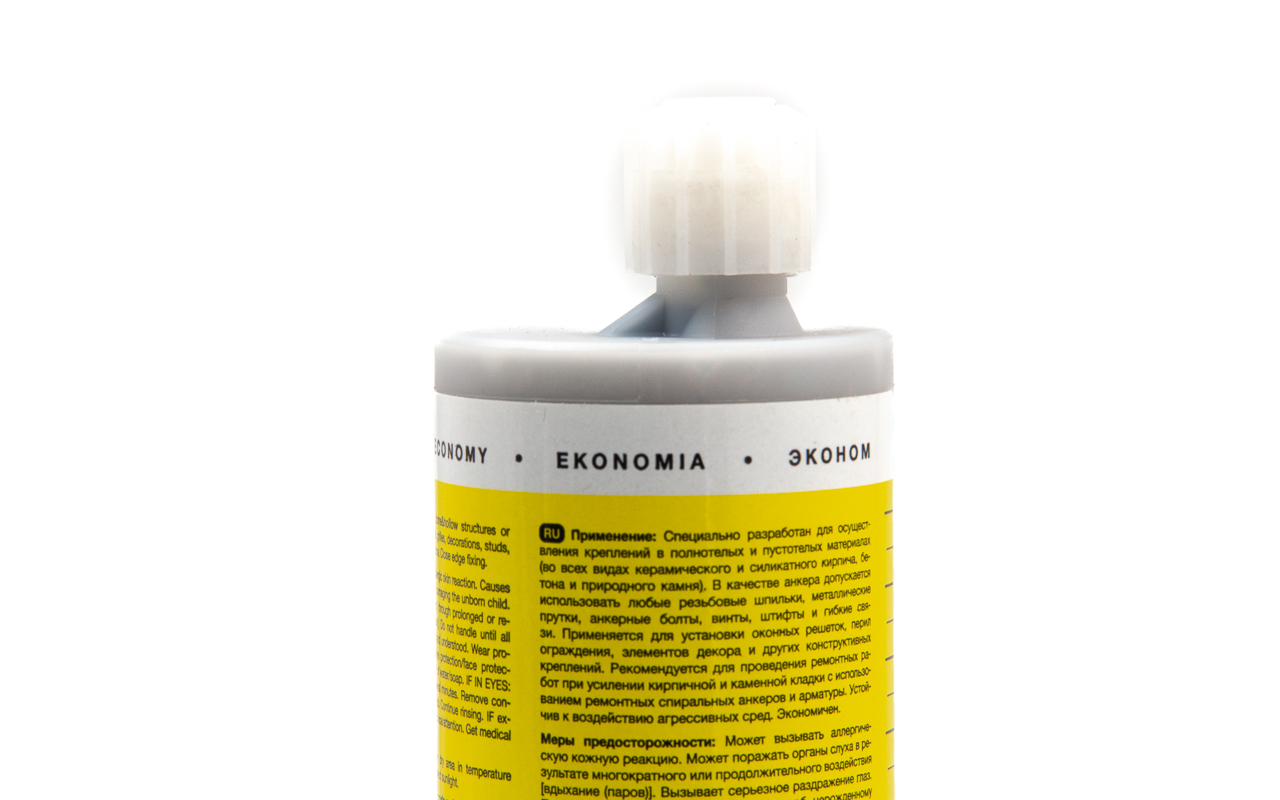 В состав химического анкера входит быстроотверждаемая синтетическая полиэстероидная смола в стироле. Используется в полнотелых и пустотелых материалах (керамический и силикатный кирпич, бетон, природный камень).