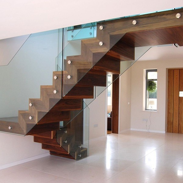 Стеклянные ограждения маршевых лестниц в интерьере - фото
