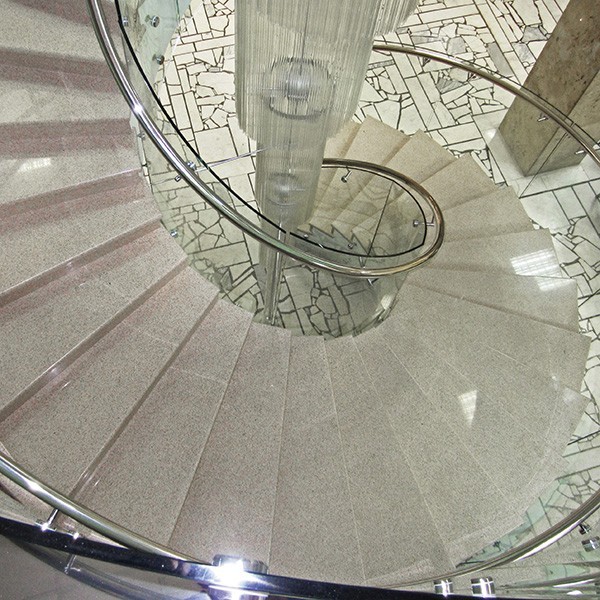 Винтовые лестницы и конструкции с забежными ступенями, как правило, монтируются в частных домах и загородных коттеджах. Они отлично справляются со своими прямыми функциями, а также выгодно экономят пространство комнат. Сочетание нержавеющей стали и стекла придаст помещению современный вид, не перегружая интерьер.