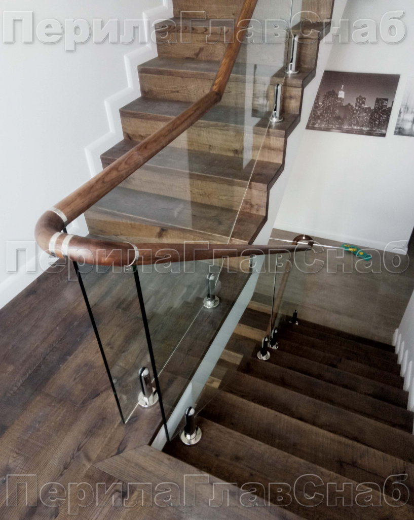 Наиболее популярные решения цельностеклянных ограждений лестничных маршей: