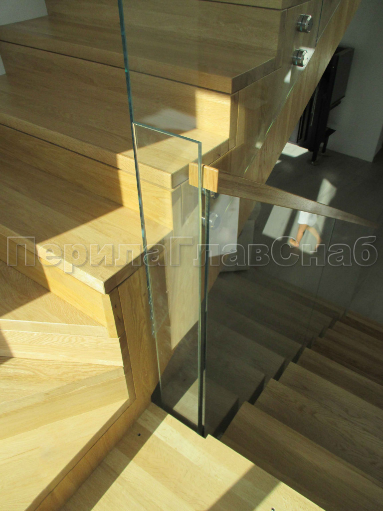 Ограждение лестницы с квадратными стойками и пластинчатыми стеклодержателями