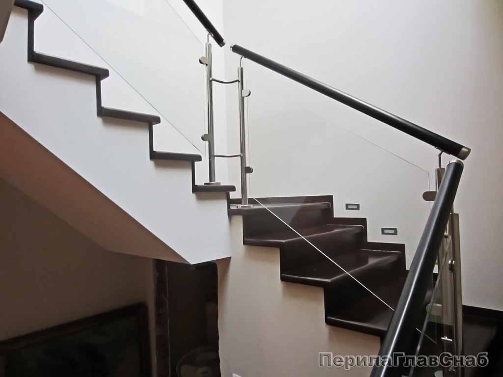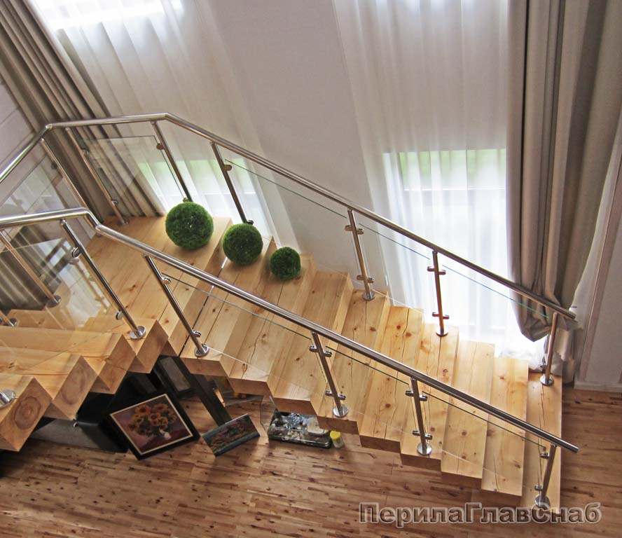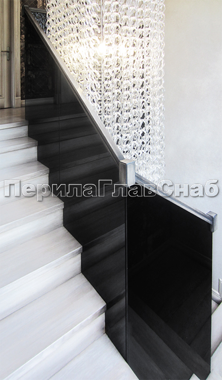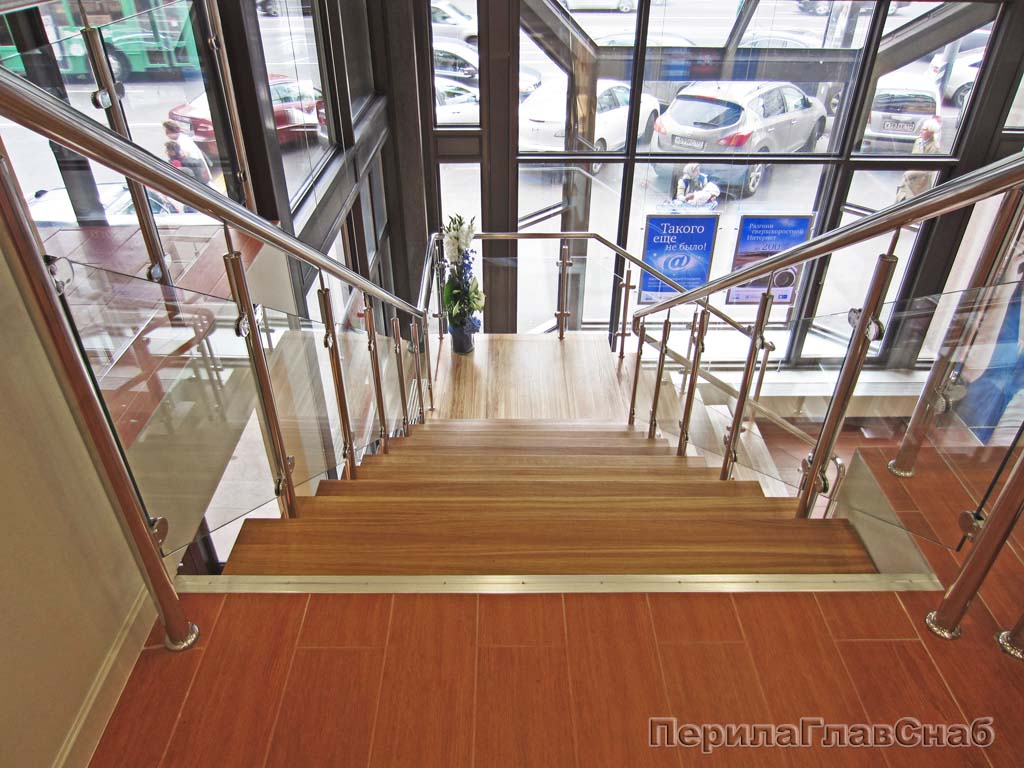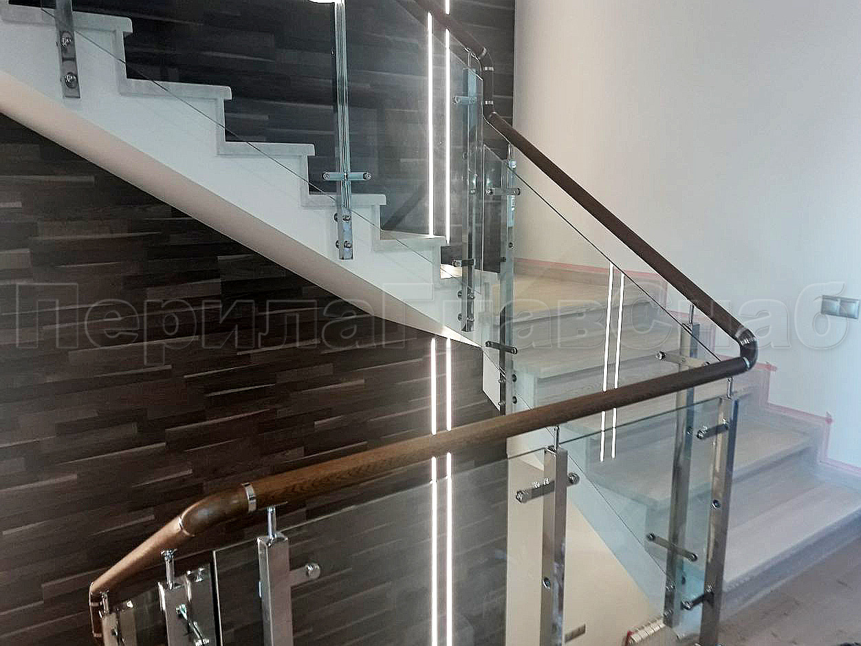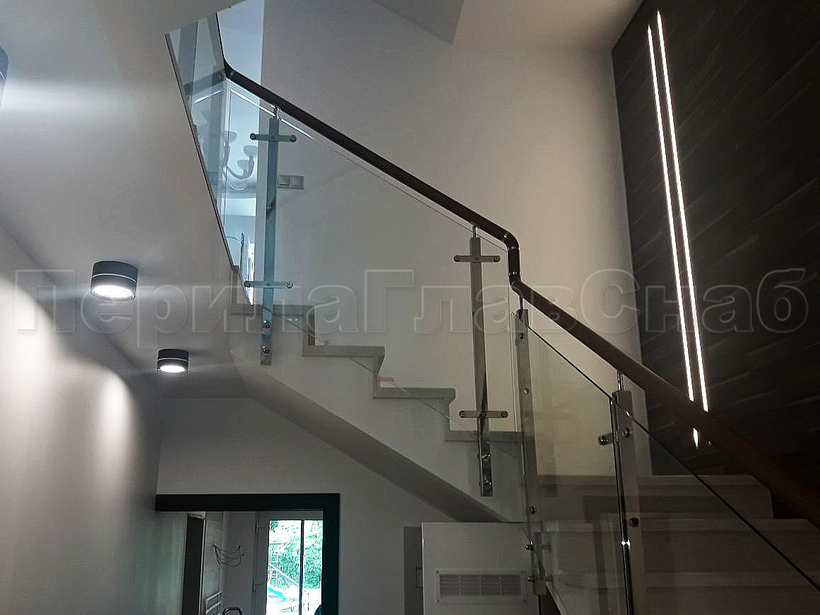 - Поручень - деревянная труба с пазом. Как дополнительная опция - можно включить подсветку стекла.