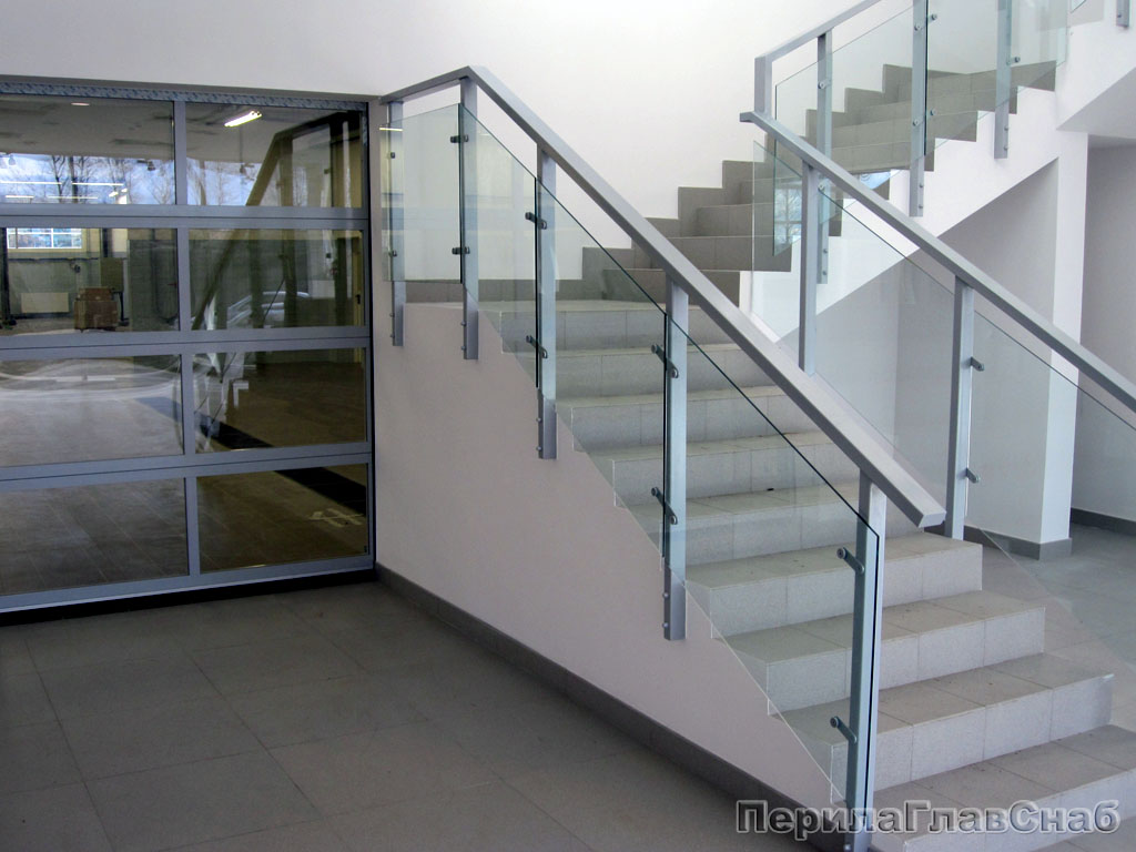 Ограждение лестницы с квадратными стойками и пластинчатыми стеклодержателями