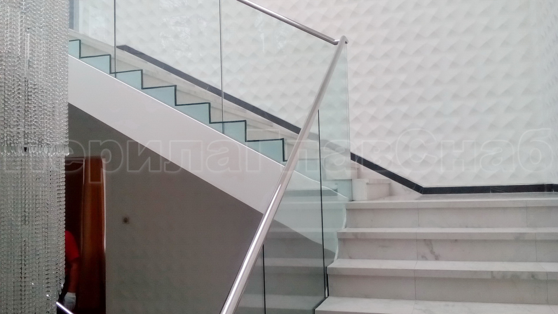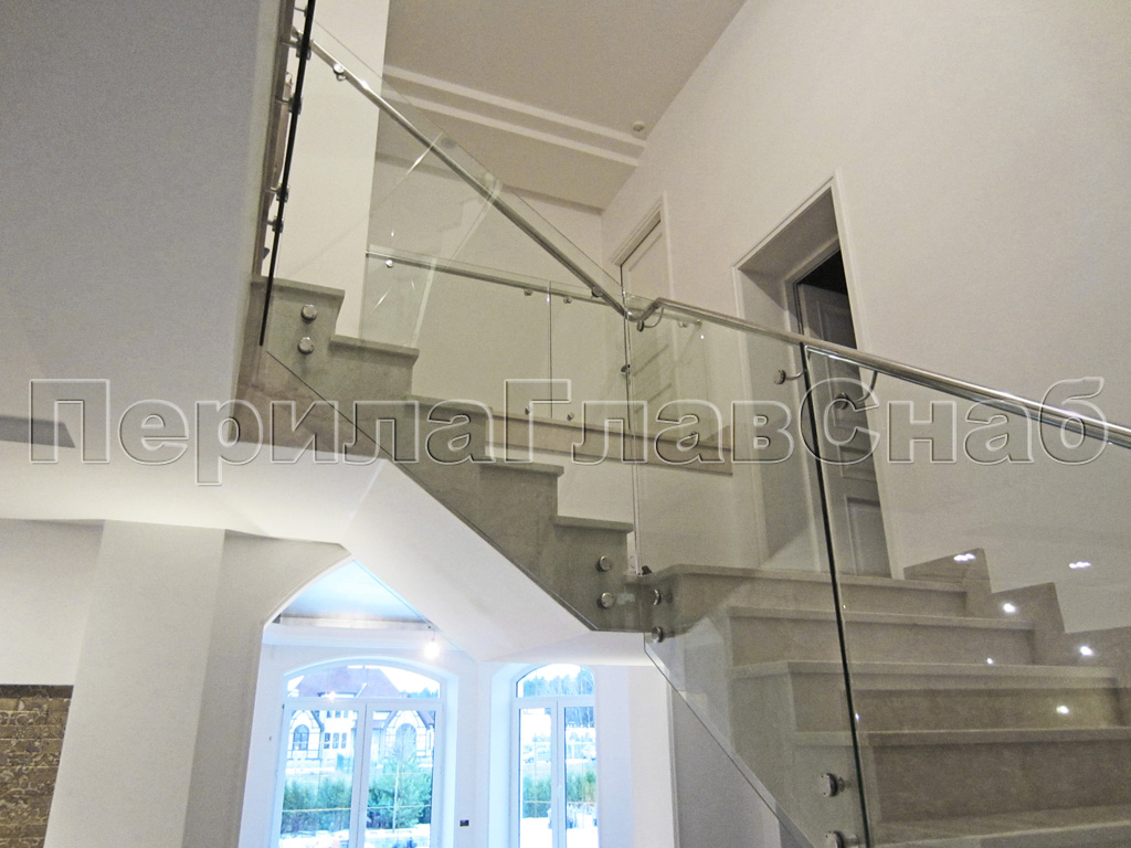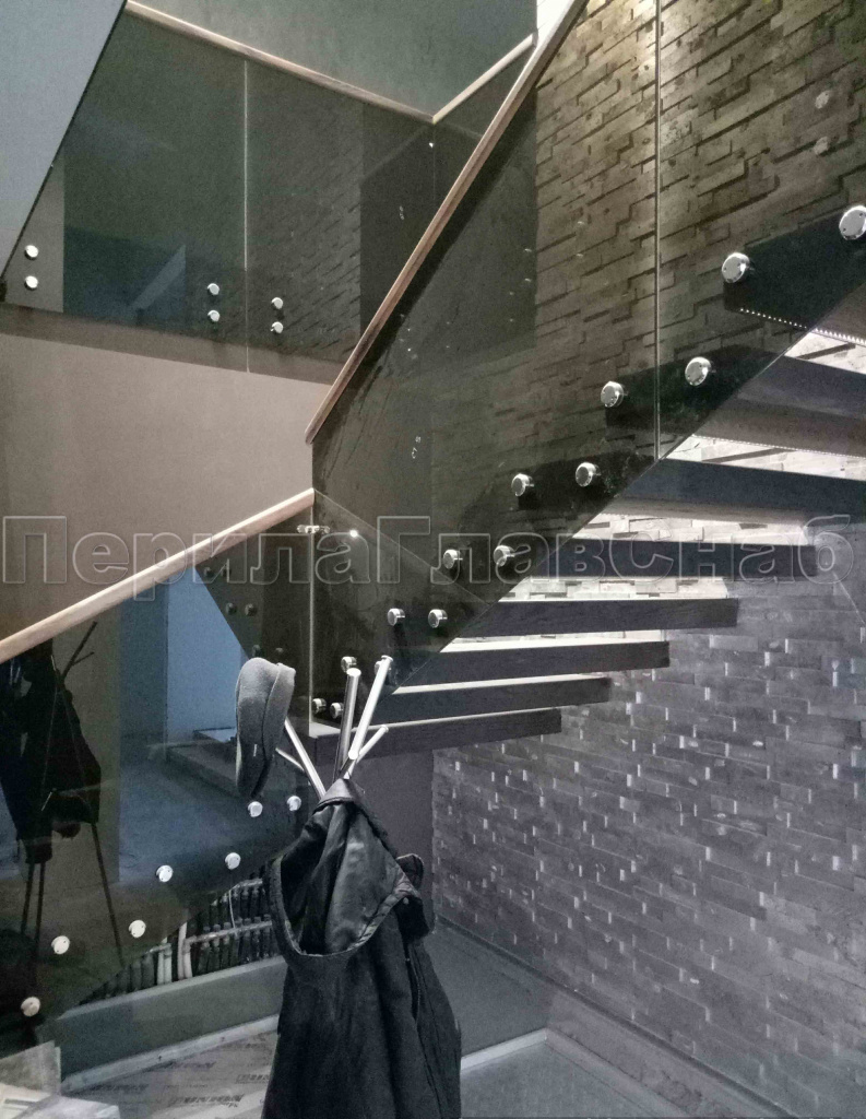 Ограждение для лестницы на несущем стекле с точечным креплением в торец для крыльца