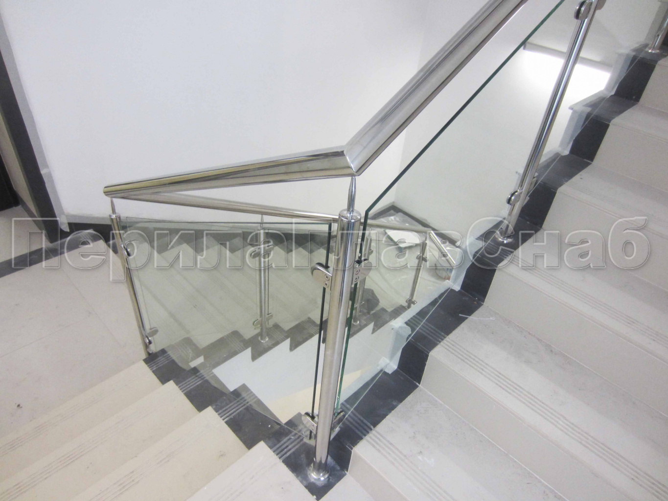 Ограждение для лестницы из нержавейки с зажимными стеклодержателями для крыльца