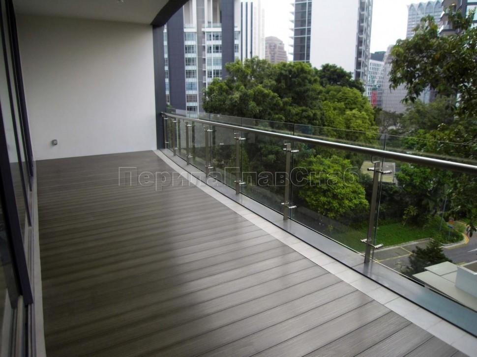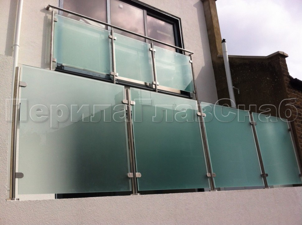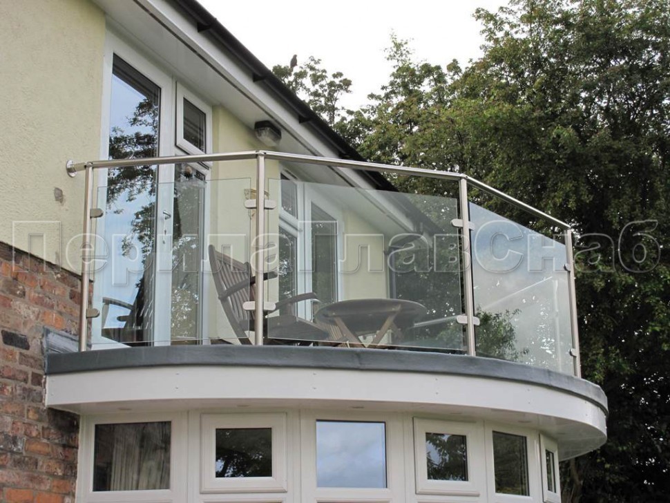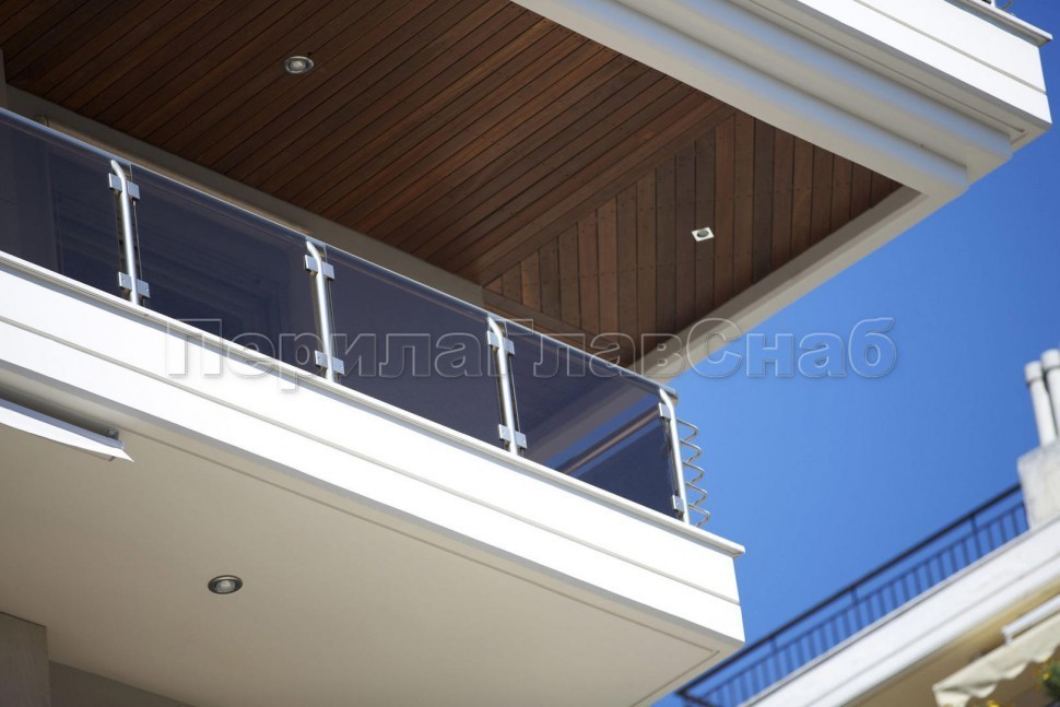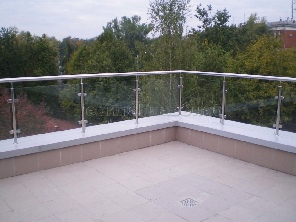 Стеклянные ограждения для балкона с нержавеющими стойками.