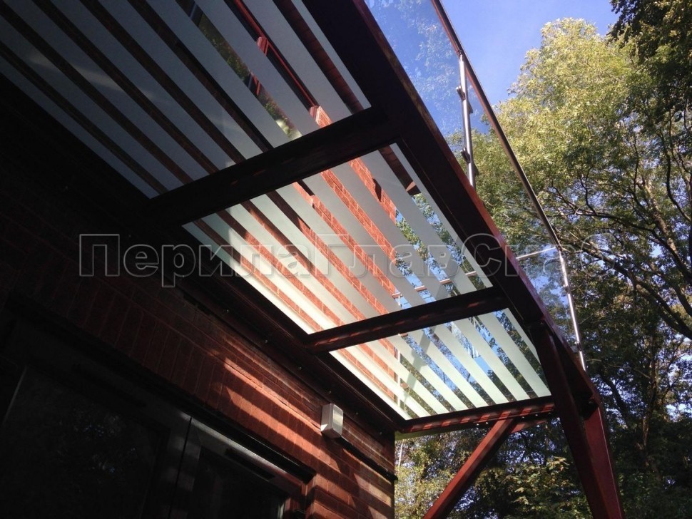 Ограждение для кровли на несущем стекле и министойках