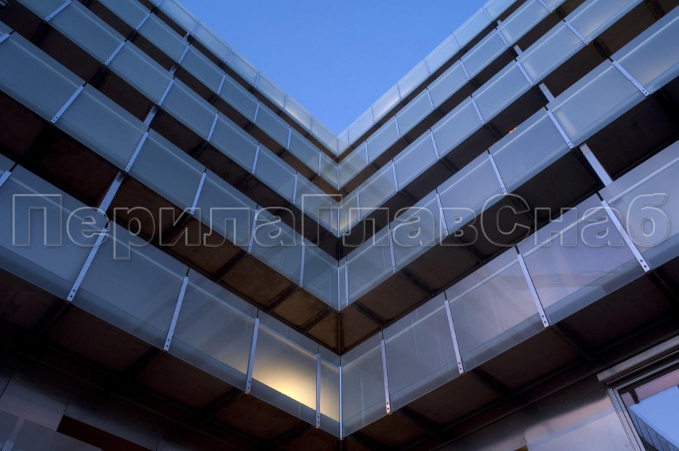 Ограждение кровли на несущем стекле и алюминиевом профиле
