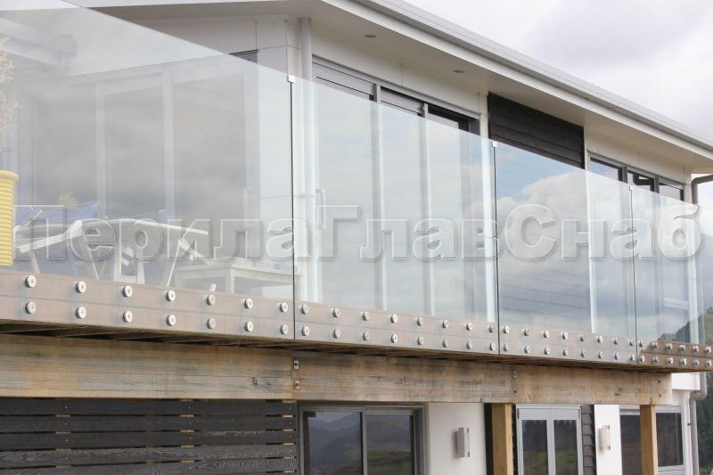 Несущее стекло крепится в торец балконного основания специальными точечными креплениями.