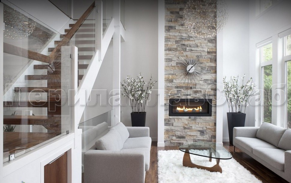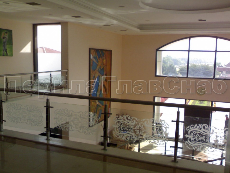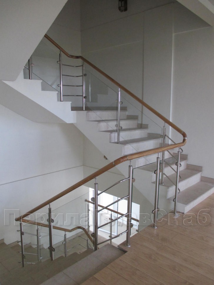 Ограждения лестницы без поручня с зажимными стеклодержателями и стойками