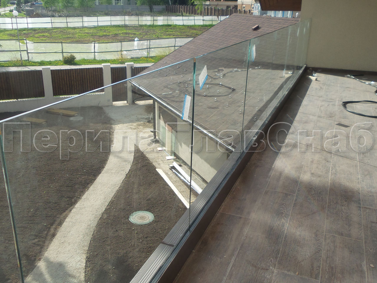 Стеклянные ограждения для террасы на профилеСтекло может быть установлено в зажимной алюминиевый профиль. Для стекол разной толщины и высоты мы разработали и изготовили собственные запатентованные системы зажимных профилей, которые выдерживают нагрузки до 5кН согласно СП 20.13330.2016. Для вас это означает, что установленные «ПерилаГлавСнаб» стеклянные ограждения будут соответствовать строительным нормам безопасности эксплуатации. |