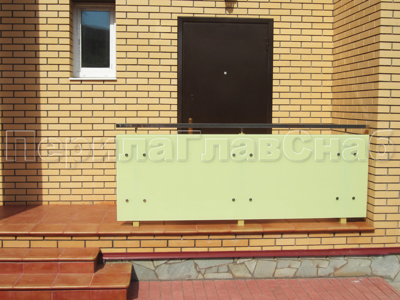 Цельностеклянное ограждение на зажимном алюминиевом профиле для крыльца в Симферополе. Готовые проекты ПерилаГлавСнаб