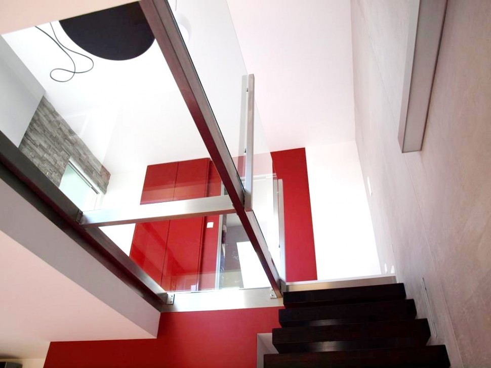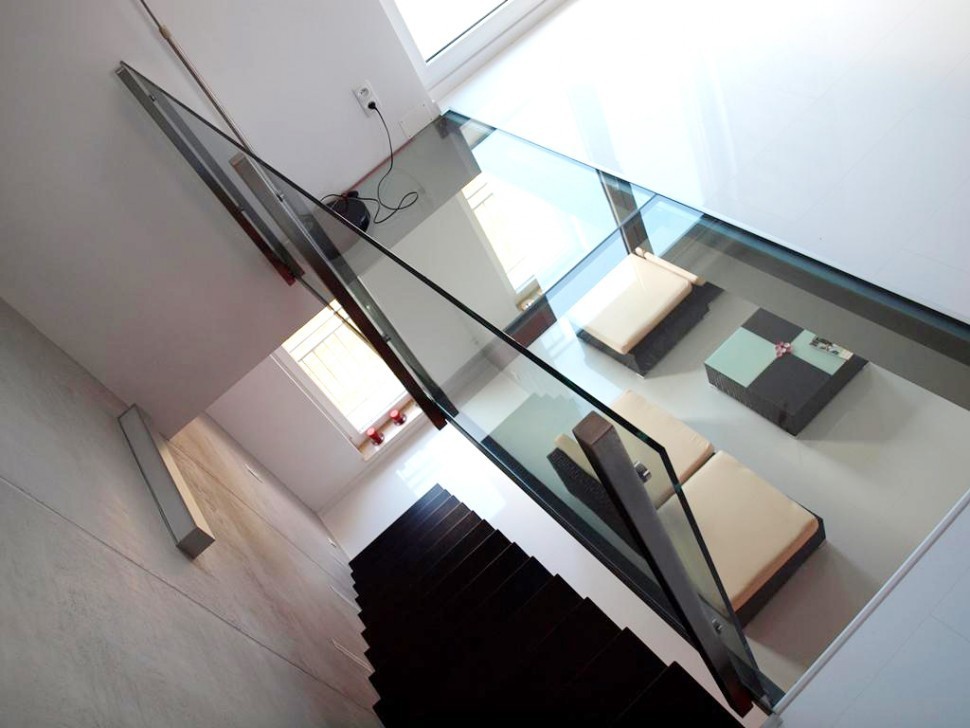 Для изготовления применяются многослойные стеклянные панели, соединенные по технологии триплекс. Это обеспечивает гарантию прочности, визуальной легкости и надежности.