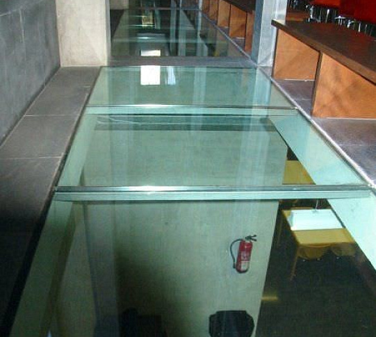 Стеклянное перекрытие из матового стекла на внутреннем балконе